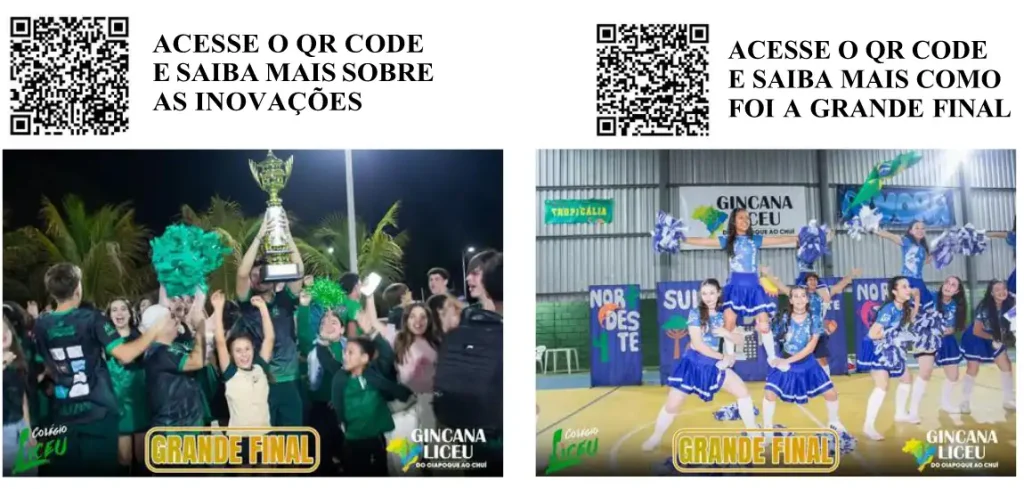 No Colégio Liceu,os eventos Gincana e Liceu em Cena têm um papel fundamental na formação cultural e social dos alunos.Mais do que momentos de confraternização, representam oportunidades de aprendizado,solidariedade criatividde e integração. No Liceu em Cena, as crianças encantaram ao apresentar, sob orientação dos professores,danças típicas das diverss regiões do Brasil, celebrando a riqueza cultural de norte a sul do país – do Oiapoque ao Chuí- mostrando que a educação também se faz com arte, movimento e valorização das nossas tradições.